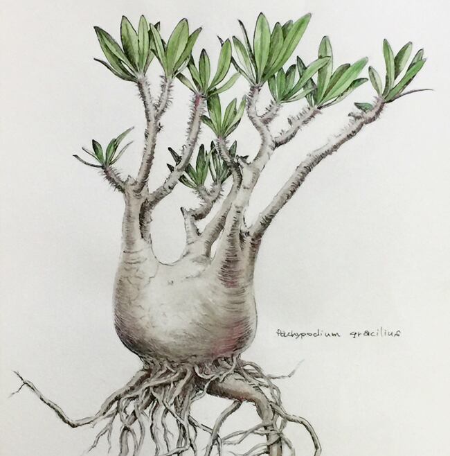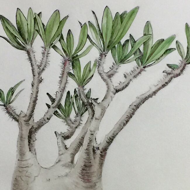 パキポディウム・グラキリス③ 植物画 (原画)Pachypodium Gracilius