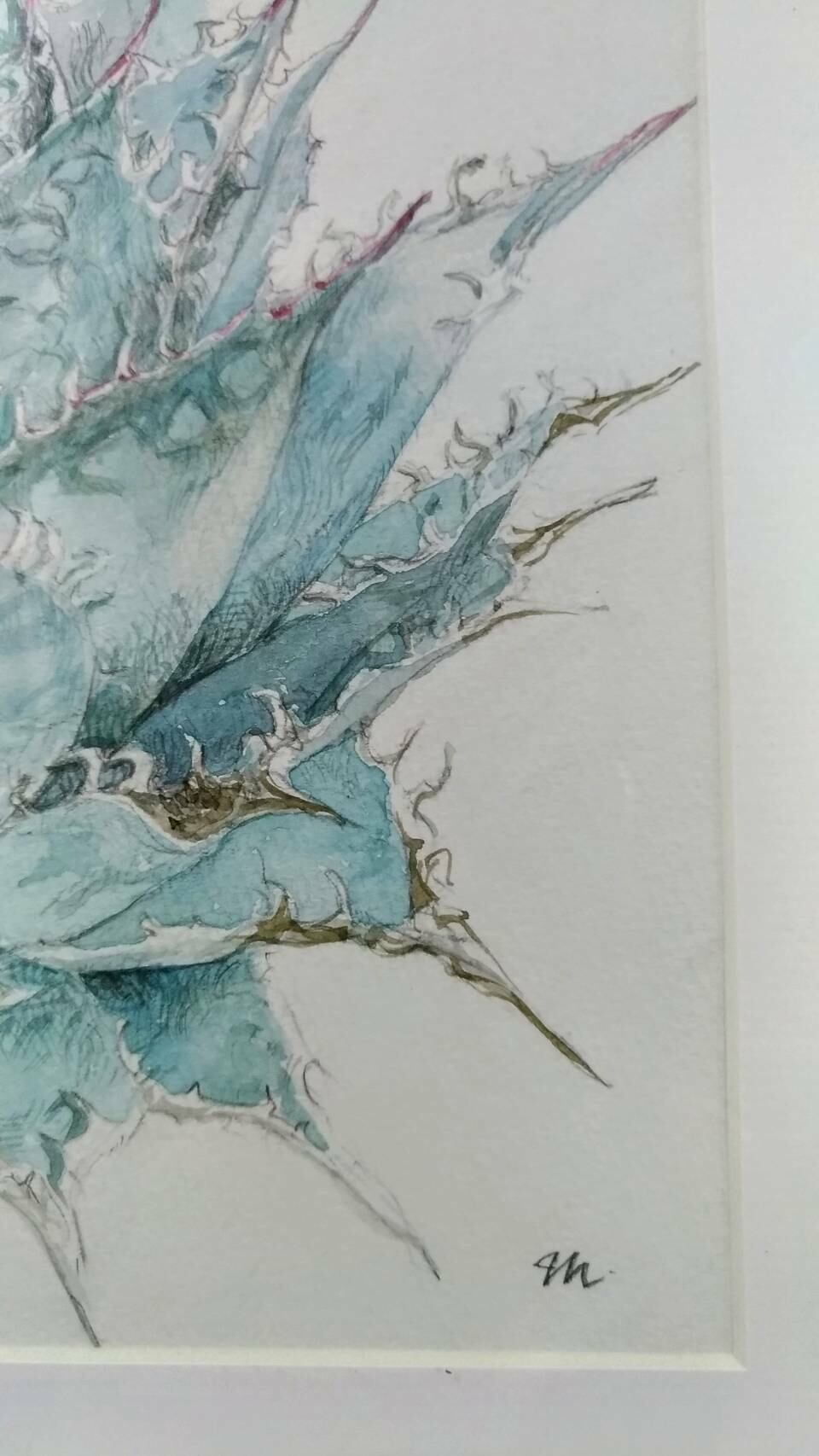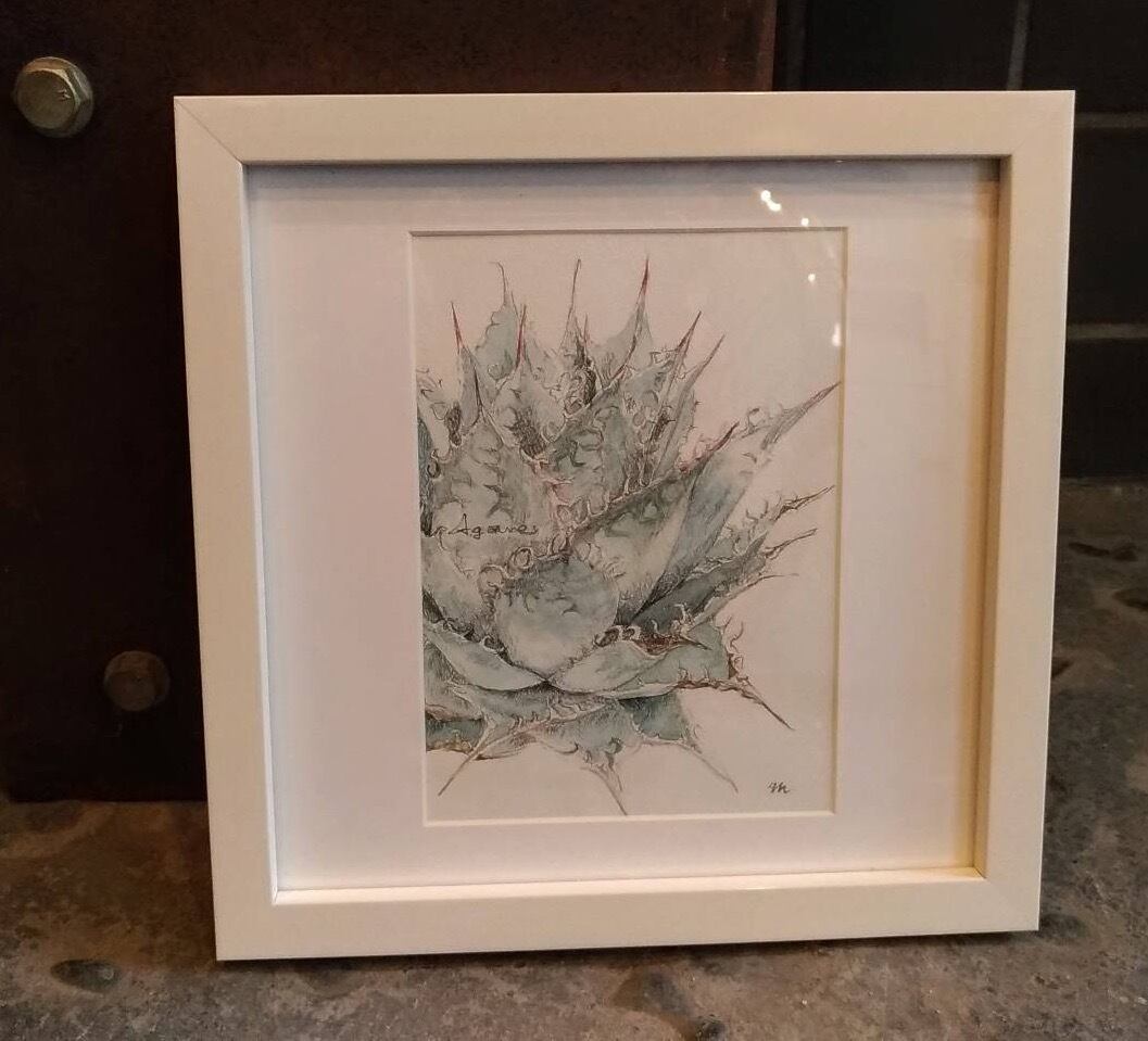 アガベ ポタトラム 雷神 植物画(原画・額入り) Agave Potatorum Raijin