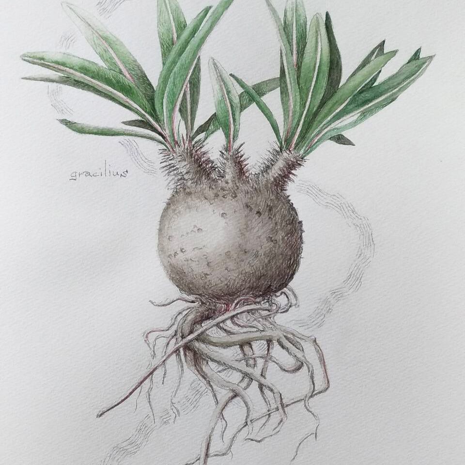 塊根植物画(パキポディウム・グラキリス・Pachypodium Gracilius)の原画(水彩画)となります。